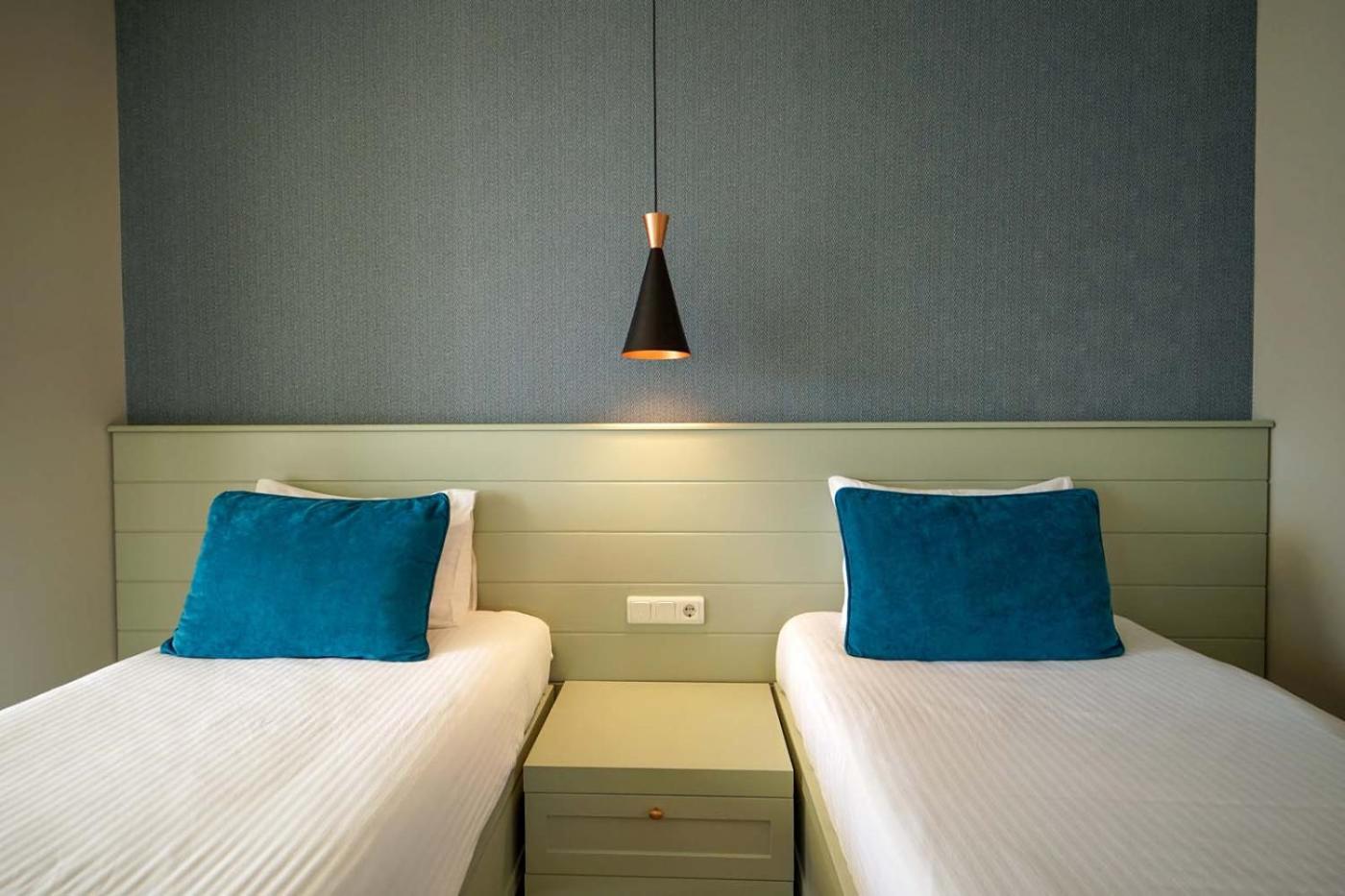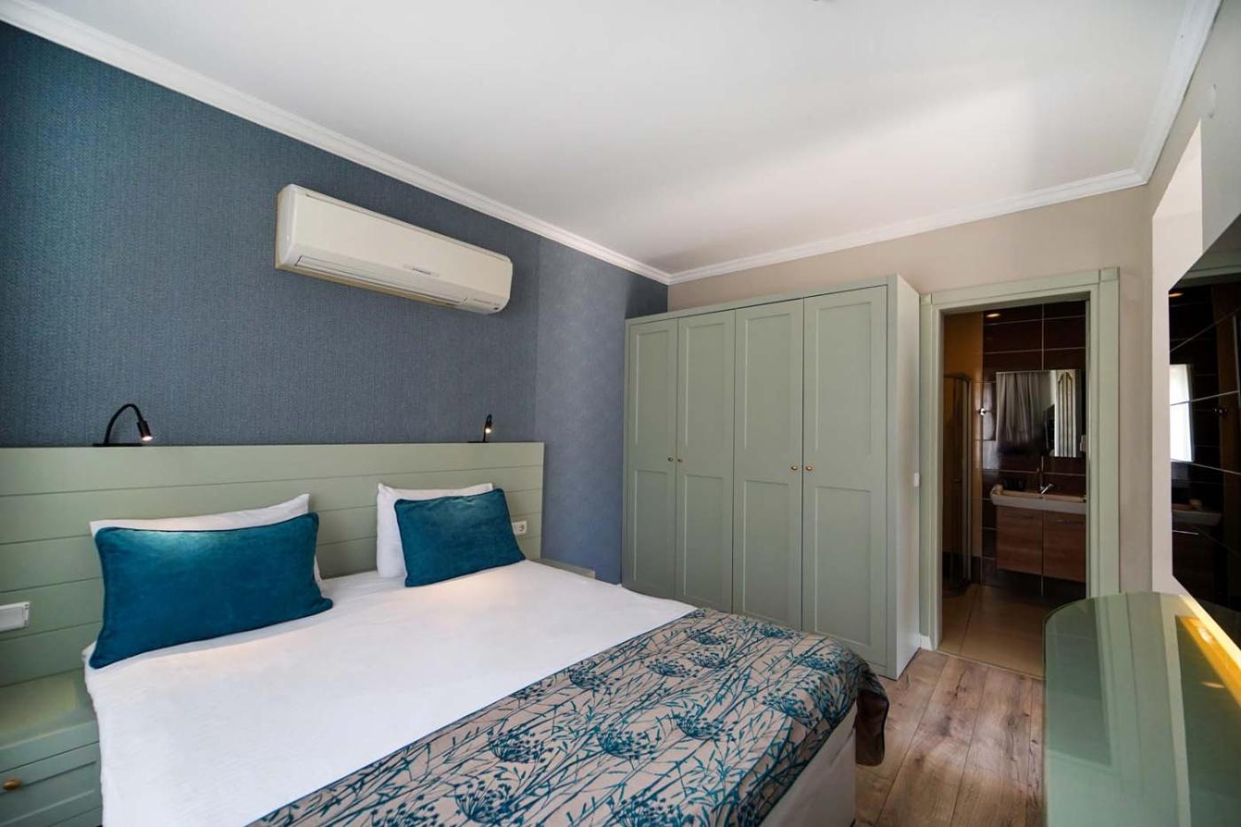Birimlerde hem balkon bölümü yer alır hem de klima olanağının yanı sıra TV (düz ekran) ve içinde ücretsiz banyo malzemeleri bulunan bir özel banyo mevcuttur.