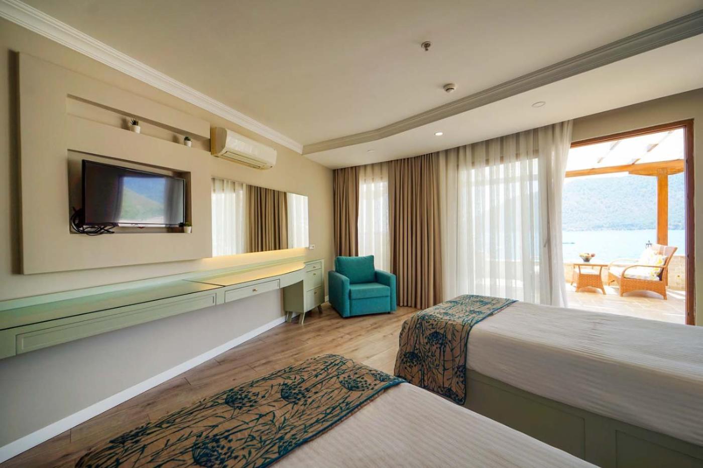 Dört Kişilik Oda - Deniz Manzaralı. This air-conditioned quadruple room is comprised of a flat-screen TV with cable channels, a private bathroom as well as a terrace with sea views. The unit has 3 beds. ;