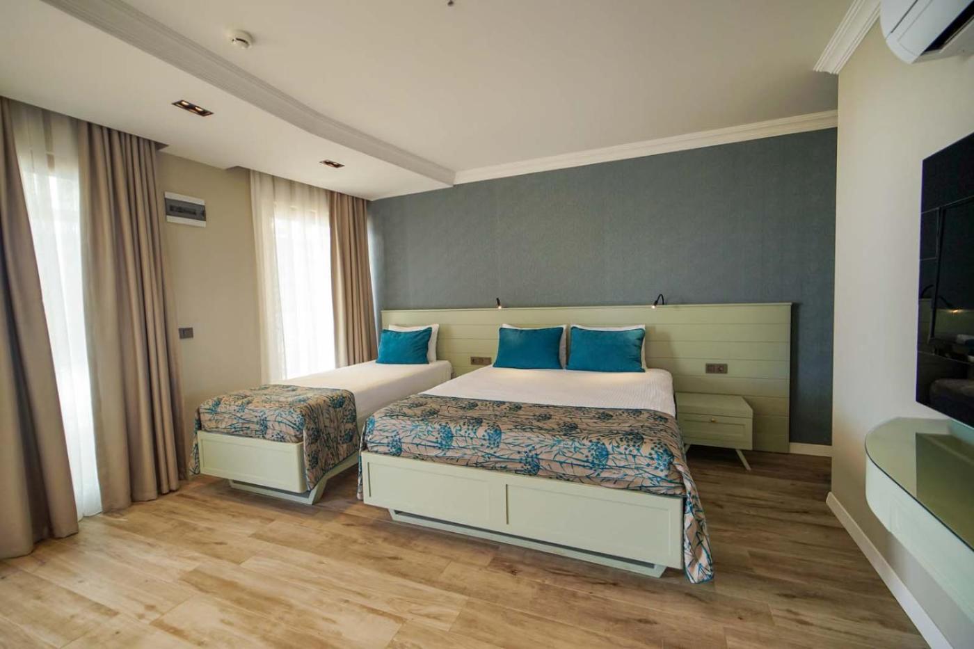 Aile Odası. This air-conditioned family room includes a flat-screen TV with cable channels, a private bathroom as well as a balcony with sea views. The unit offers 3 beds. ;